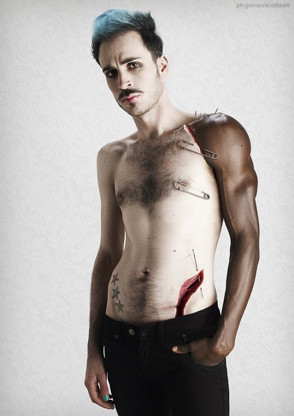 The subject of this exhibition is the main body, wearing wounds and disfigurements gives us the fragility of appearances by a part and the scars of life on the other side. In contrast to the myth of eternal beauty that resists battle against time, with these photos you want to demystify this concept, to show that the madness that lies behind this race is human, all too human. In their work, and John Bortolani Marcorea Malià transform reality in a fantastic stage. John uses light to trap the subject in a frame and makeup pixels. Marco manipulates the organic shapes the hair and paints the skin. Who needs them to do their search for a magic mirror, which fore the reality to make it more beautiful. John and Mark are two great magicians of appearance. This project transformed the photographic images taken stage in a harsh reality: it is a mirror and said visible and handling acts to unmask the theater. Just a little ‘make-up water and leaves, the fold will come undone. And every bottom photo is only the illusion of stopping time.